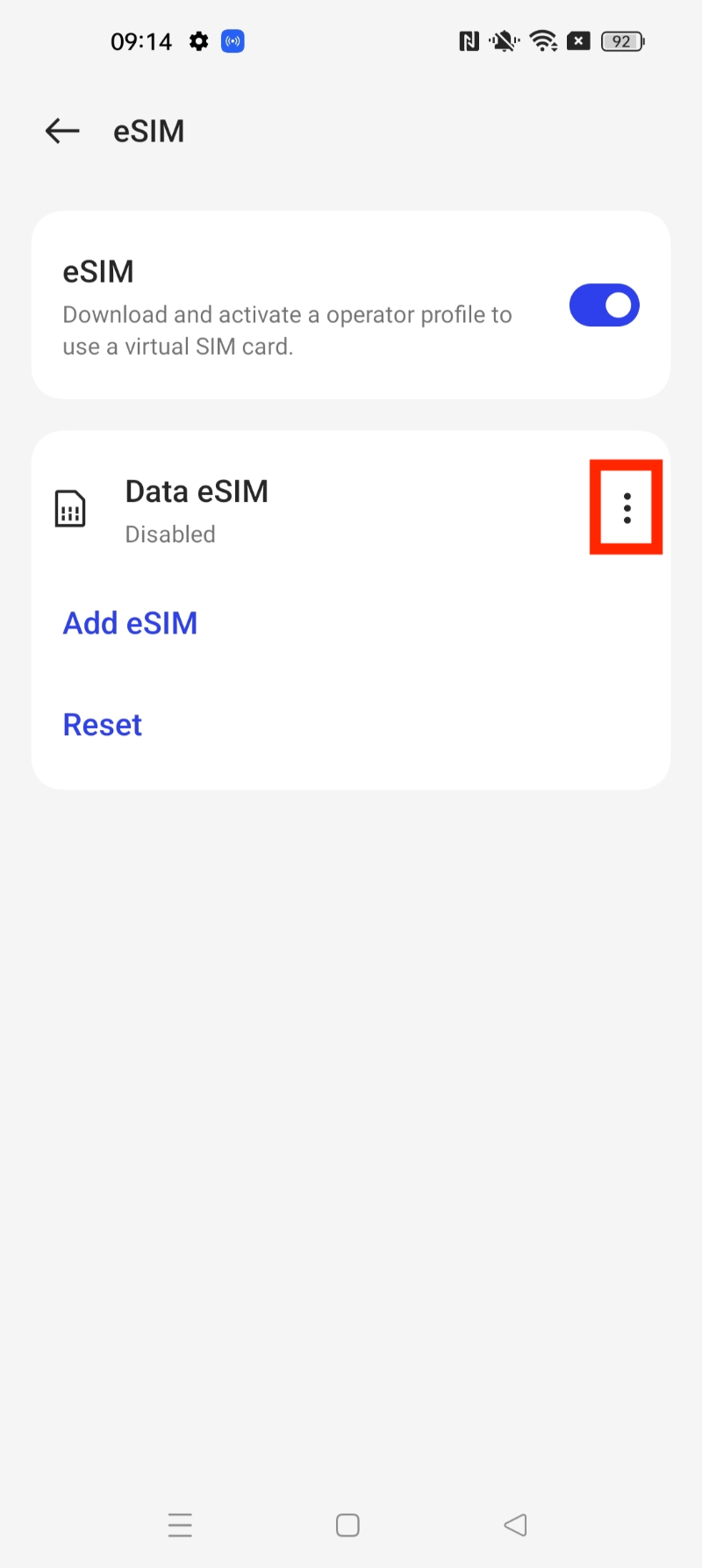 - In this section, ensure that the correct eSIM is enabled. If the eSIM is not turned on, turn it on n