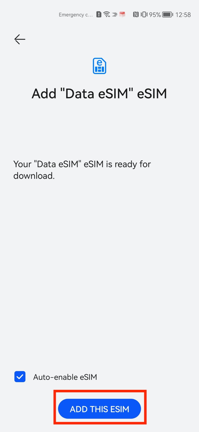 - In this section, ensure that the correct eSIM is enabled. If the eSIM is not turned on, turn it on now.